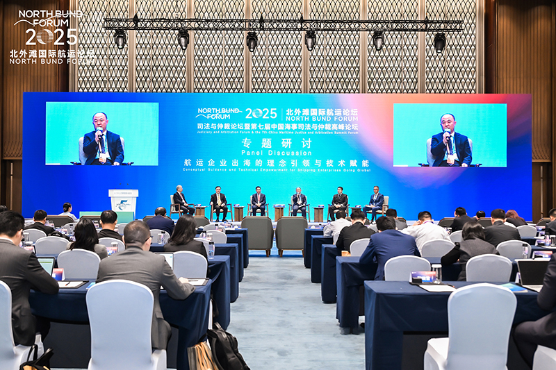 10月21日上午,协会副总经理贾鹏在中国海事仲裁委员会承办的2025北外滩国际航运论坛司法与仲裁论坛暨第七届中国海事司法与仲裁高峰论坛“航运企业出海的理念引领与技术赋能”专题研讨环节发言。