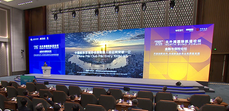 10月20日上午,由上海航运交易所、中国船东互保协会、上海航运保险协会联合承办的2025北外滩国际航运论坛金融与保险论坛在上海世界会客厅举行。