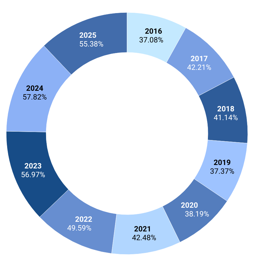 根据IUMI发布的《2025全球海上保险市场分析报告》,2024年货物索赔金额超过25万美元的案件共计583起,索赔总金额达6.77亿美元。统计表明,过去三年总体索赔情况呈稳步改善态势。与2023年相比,不仅索赔数量下降了19%,索赔总额也从8.56亿美元降至6.77亿美元,降幅达21%。