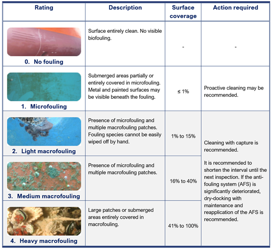- The procedures for cleaning actions if macrofouling is observed during inspections.